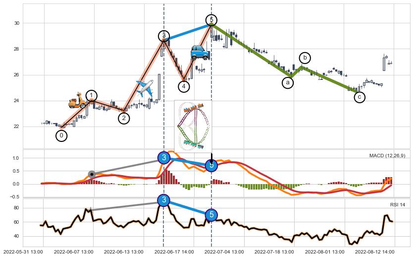 ➣ 波浪理论:猜想达到c点后小回调终止反转上涨 → 上涨 → 【拐点】临近 → 阶段均值回复结束后继续大周期趋势跟踪