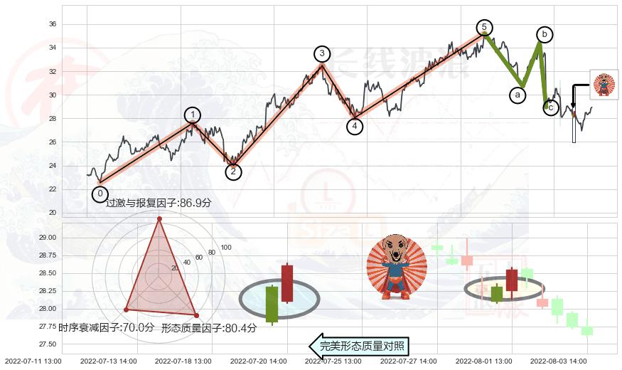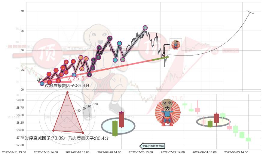 ➢ 🕰 价格走势在2022-07-28 14:00:00至2022-07-29 13:00:00期间形成射击之星形态,残存影响值:-6.39