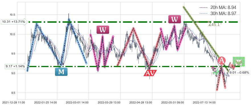 ♞ 20小时均线:8.94,30小时均线:8.97→ 快线<慢线