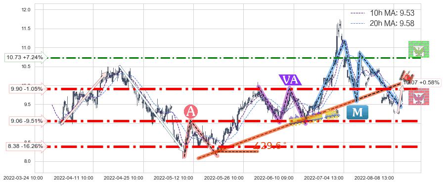 ♞ 10小时均线:9.53,20小时均线:9.58→ 快线<慢线