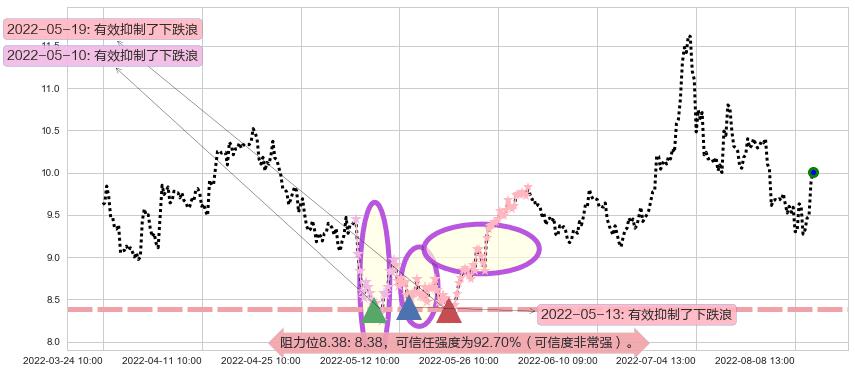 ♘ 支撑价格位9.06,可信任强度92.68%,距离最后交易2022-08-12 14:00形成的收盘价格10.01相差 -9.51%