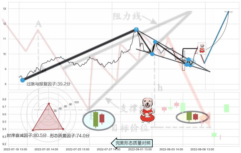 ♘ 支撑价格位9.90,可信任强度85.47%,距离最后交易2022-08-12 14:00形成的收盘价格10.01相差 -1.05%