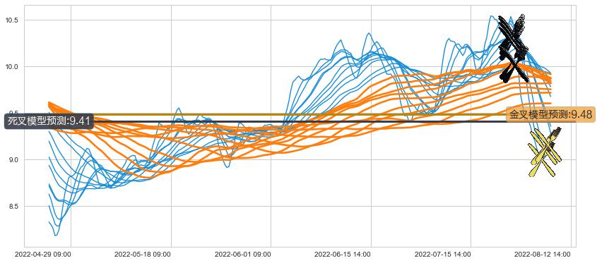 ➢ 40小时均线于(07-29 14:00: 10.25)形成【死叉】基于【死叉历史模型】预测死叉后最低波谷价格: 9.47, 死叉后最低价格8.96,已经下跌超出预测最低波谷价格, 预期反弹