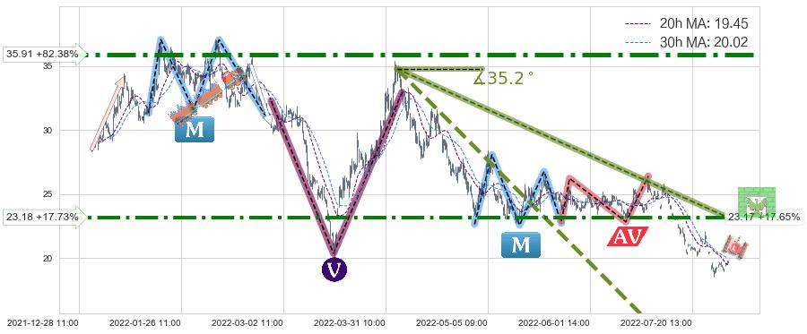 ♞ 20小时均线:19.45,30小时均线:20.02→ 快线<慢线
