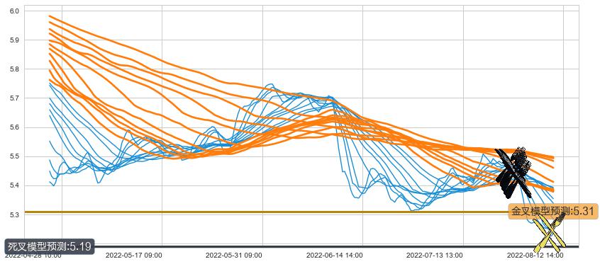 ➢ 13小时均线于(07-29 13:00: 5.47)形成【死叉】基于【死叉历史模型】预测死叉后最低波谷价格: 5.37, 死叉后最低价格5.20,已经下跌超出预测最低波谷价格, 预期反弹