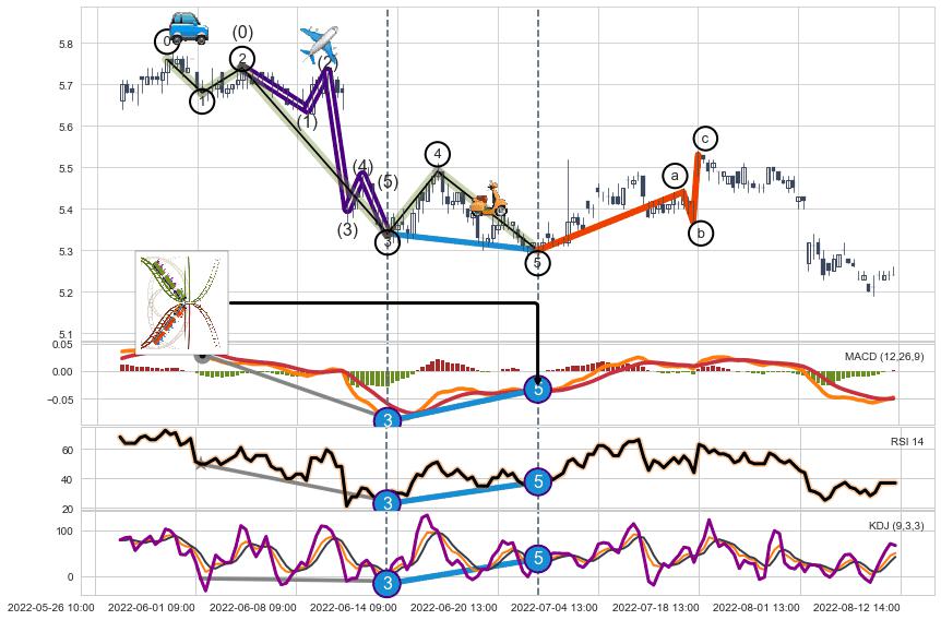 ➣ 第三,五驱动浪端点:【KDJ】走势出现【常规背离 & 反转信号】背离程度99.00%,背离夹角角度64.0˚,背离程度较大