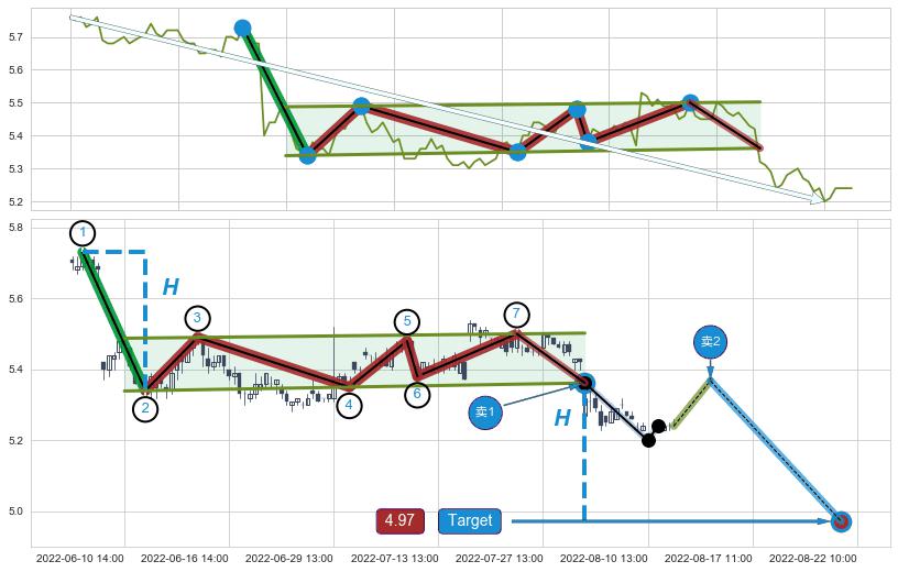 ➣ 最小中继整理跌幅→𝐇: 0.190000 (上平行阻力线与下平行支撑线的垂直距离)