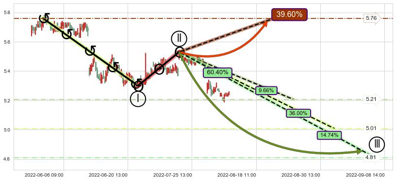 ➢ 循环浪继续向下【最低】位置(09-08:14, 4.81),匹配聚类样本比例24.40%, 可能性概率14.74%