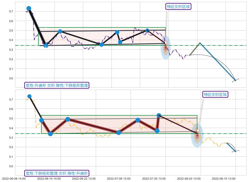 ♘ 在最后的下跌阶段2022-05-31 09:00至2022-08-12 13:00,存在 持续未破位的阻力位 ,阻力价格5.44,可信任强度84.55%,其距离最后价格5.24相差 +3.76%