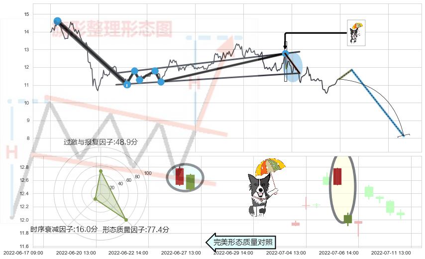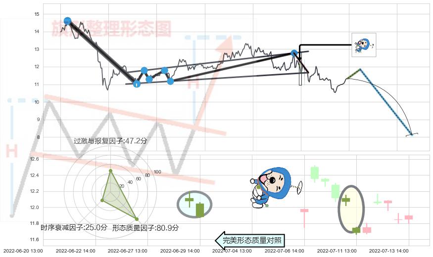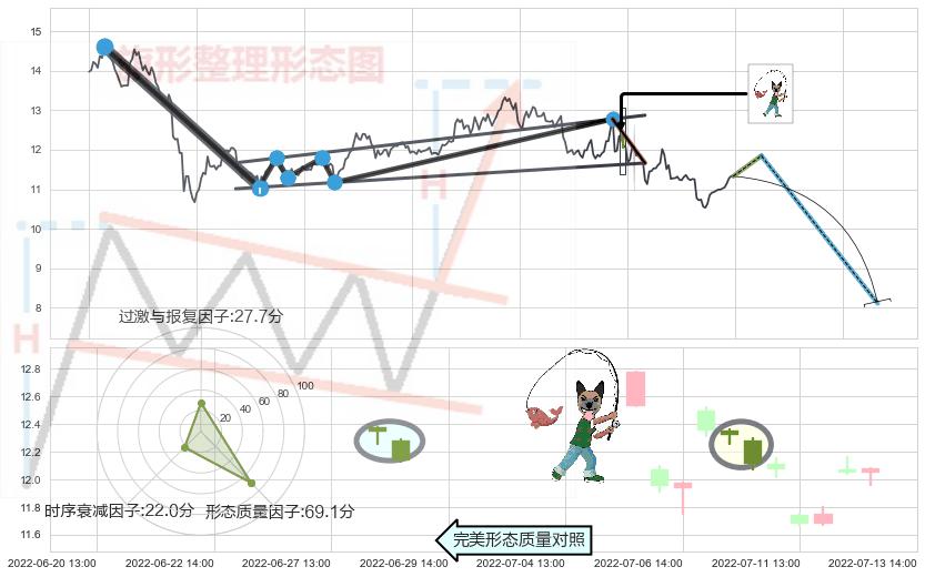 ➢ 🕰 价格走势在2022-07-08 14:00:00至2022-07-11 13:00:00期间形成下跌螺旋桨,残存影响值:-3.66