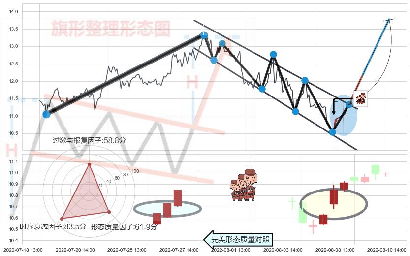 ➢ 🕰 价格走势在2022-08-01 13:00:00至2022-08-01 13:00:00期间形成锤头线(锤子线),残存影响值:6.75