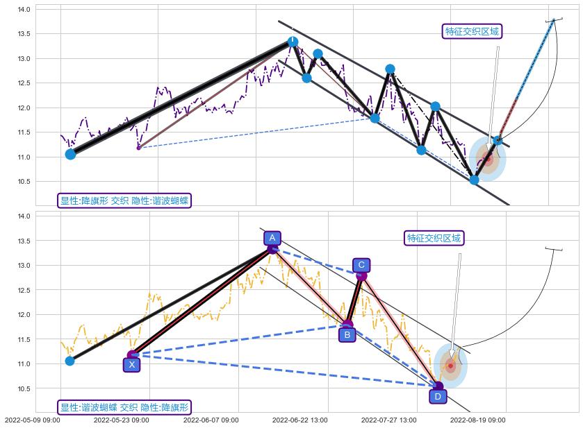 ➢ 降旗形与谐波蝴蝶信号事件周期长度级别相同,同周期信号事件