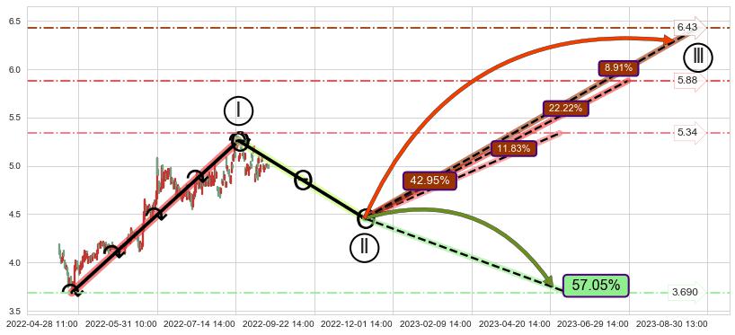 ➢ 循环浪继续向上【最低】位置(04-28:14, 5.34),匹配聚类样本比例27.54%, 可能性概率11.83%