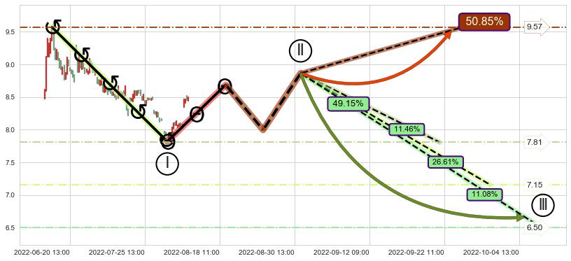 ➢ 循环浪继续向下【最低】位置(10-07:10, 6.50),匹配聚类样本比例22.54%, 可能性概率11.08%