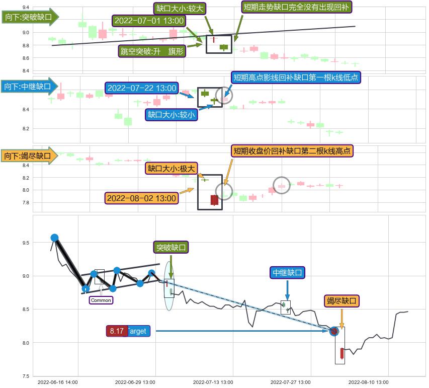 ➢ 2022-08-02 13:00形成:向下跳空【竭尽】缺口