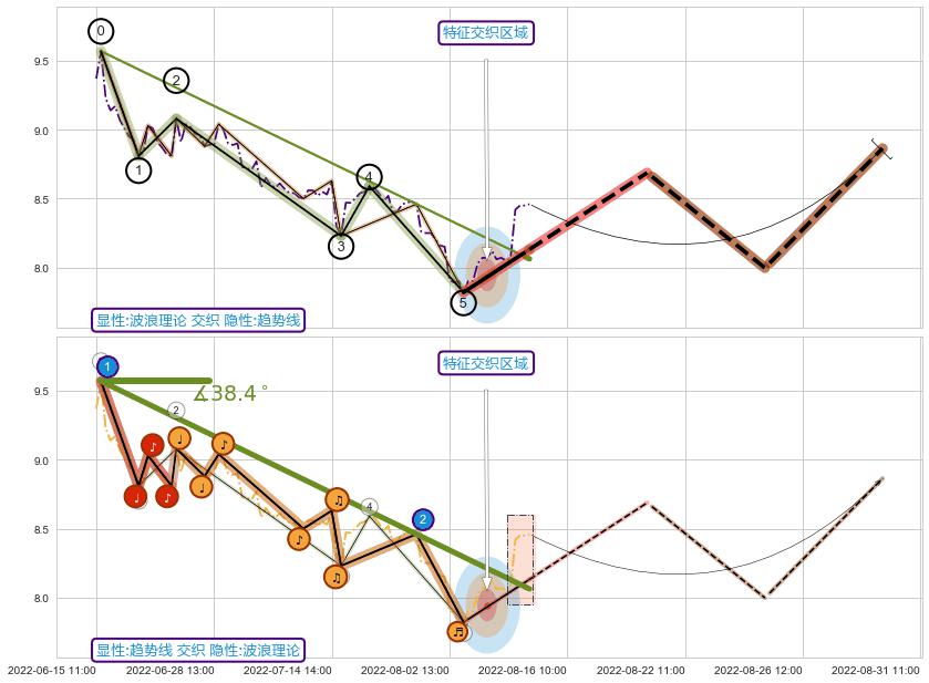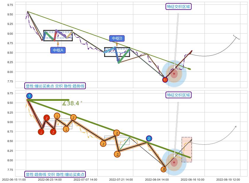 ➢ 2022-06-15 13:00-2022-08-12 13:00下跌趋势存在反转上涨[机会],其原下跌趋势的阻力位(8.06)已被突破[强支撑信号],原下跌趋势角度: 38.4˚