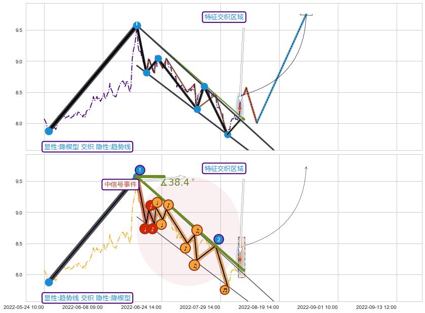 从2022-06-15 13:00至2022-08-12 13:00,共包含91个小时,阶段股价下跌-11.82%,阶段股价变动位移路程比: 1 : 5,下跌趋势角度: 38.4