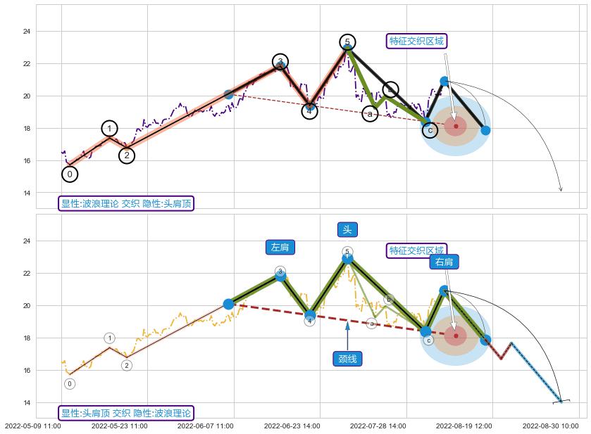 ➢ 波浪理论与头肩顶信号事件周期长度级别相同,同周期信号事件