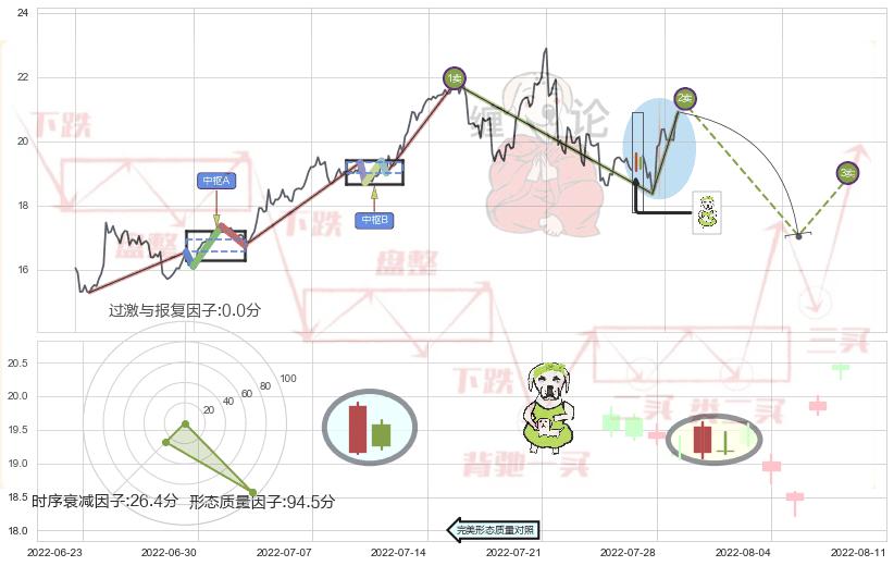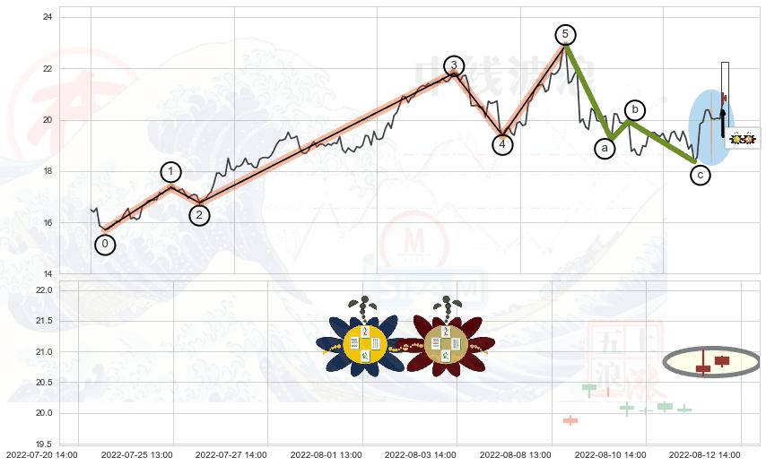 从2022-07-22 14:00至2022-08-12 14:00,共包含31个小时,阶段股价上涨12.15%,阶段股价变动位移路程比: 1 : 3
