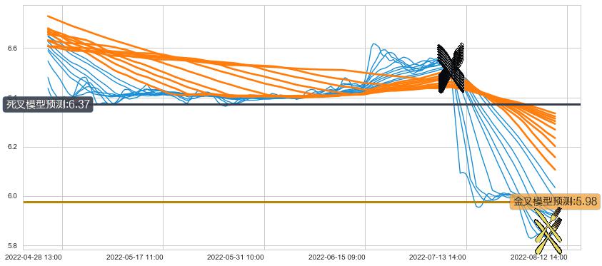 ➣ 80小时均线于(07-07 14:00: 6.50)形成【死叉】基于【死叉历史模型】预测死叉后最低波谷价格: 6.32, 死叉后最低价格5.81,已经下跌超出预测最低波谷价格, 预期反弹