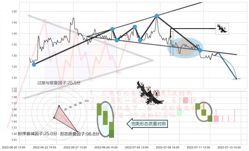 ➢ 🕰 价格走势在2022-07-08 13:00:00至2022-07-11 13:00:00期间形成三只乌鸦,残存影响值:-1.62