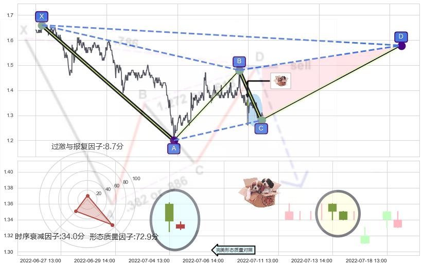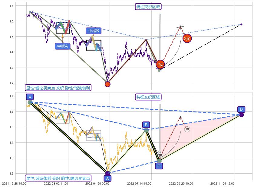 ➣ D点拟合预测价格1.5787,距离最后交易收盘价格1.3000相差 +21.44%