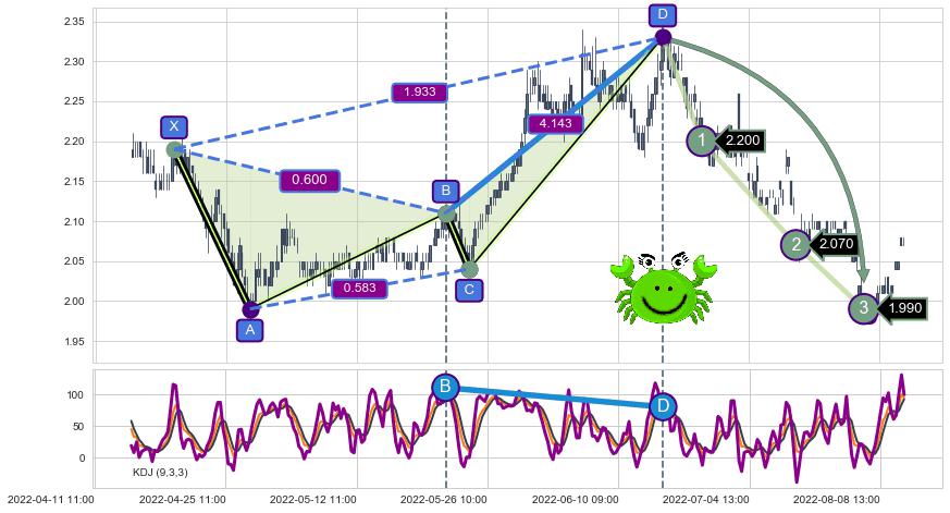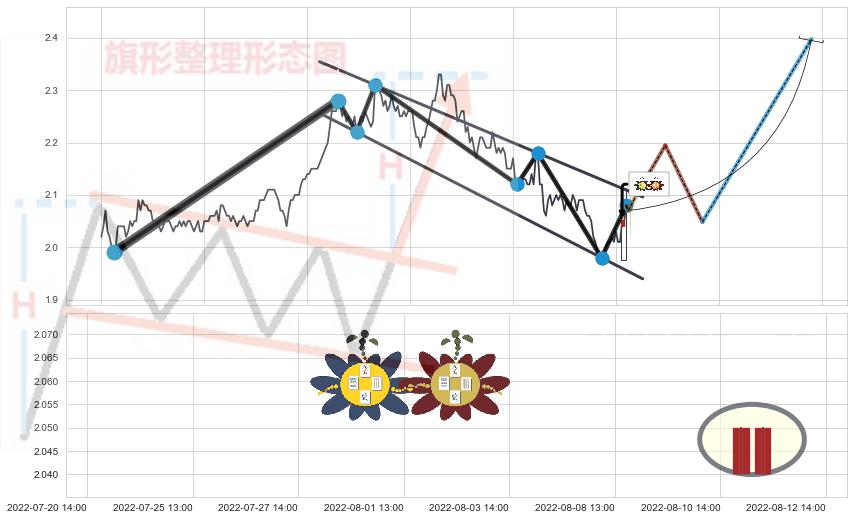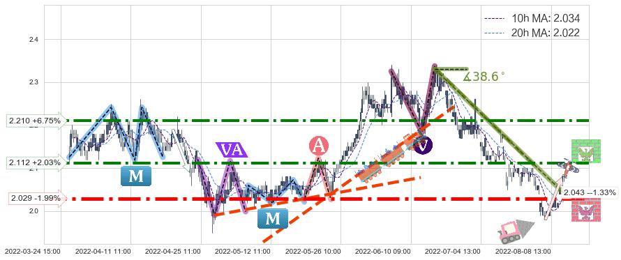 ♘ 阻力价格位2.210,可信任强度84.32%,距离最后交易2022-08-12 14:00形成的收盘价格2.070相差 +6.75%
