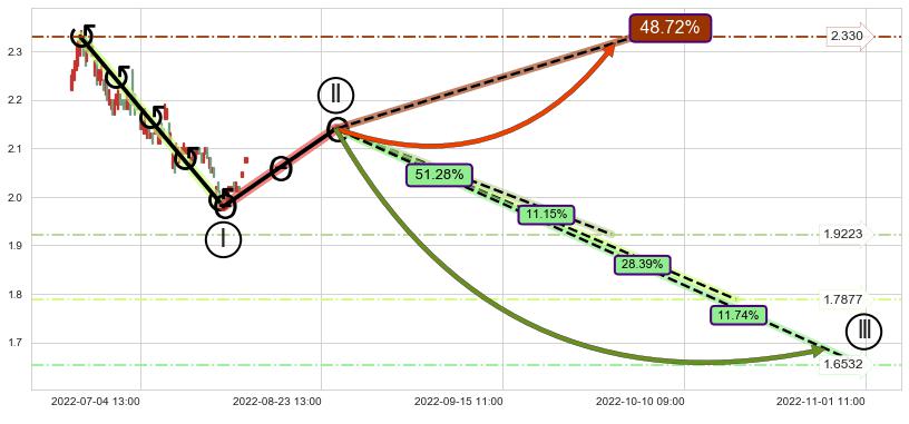 ➢ 循环浪继续向下【最低】位置(11-01:11, 1.6532),匹配聚类样本比例22.89%, 可能性概率11.74%