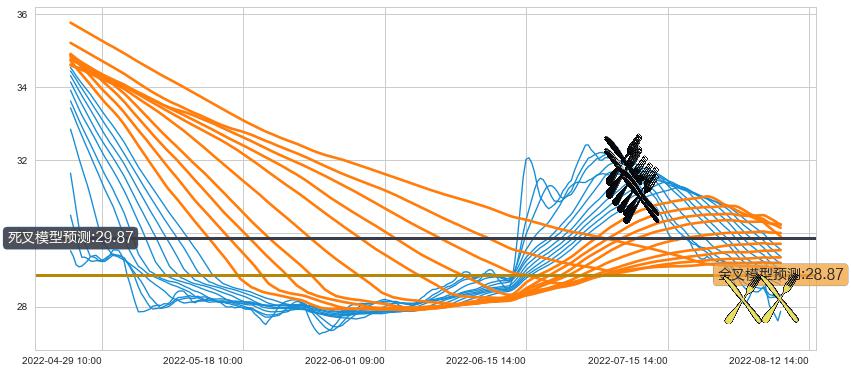 ➢ 13小时均线于(07-05 14:00: 31.95)形成【死叉】基于【死叉历史模型】预测死叉后最低波谷价格: 31.44, 死叉后最低价格26.83,已经下跌超出预测最低波谷价格, 预期反弹