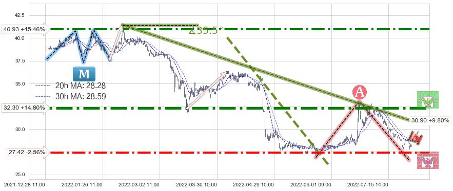 ♘ 阻力价格位32.30,可信任强度86.54%,距离最后交易2022-08-12 14:00形成的收盘价格28.14相差 +14.80%