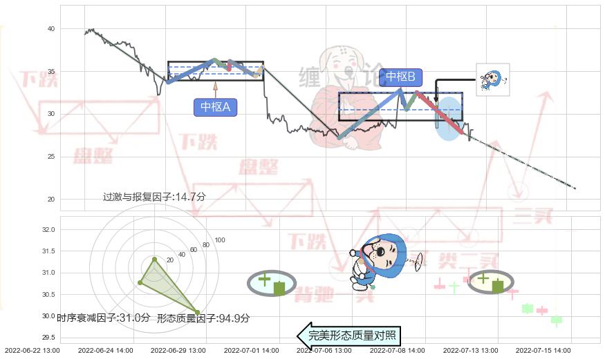 ➢ 下跌身怀六甲 🔜 缠论中枢点破位中枢B支撑下拉 综合量化分数:47.24 【中性】