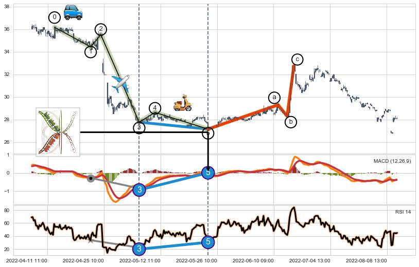 ➣ 波浪理论:猜想达到c点后小反弹终止反转下跌 → 下跌 → 【拐点】临近 → 阶段均值回复结束后继续大周期趋势跟踪