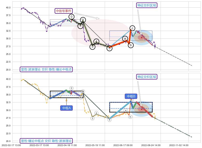 ➣ 缠论中枢点:猜想破位中枢B后持续下拉 → 下跌 → 破位中枢B支撑 → 持续趋势跟踪