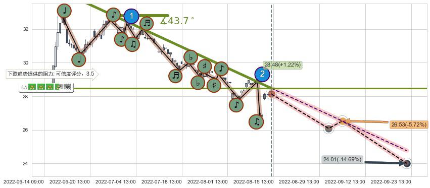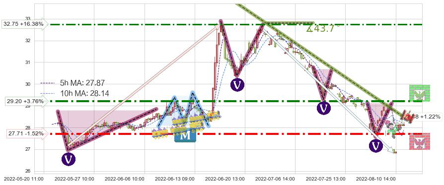 ♘ 阻力价格位29.20,可信任强度75.29%,距离最后交易2022-08-12 14:00形成的收盘价格28.14相差 +3.76%