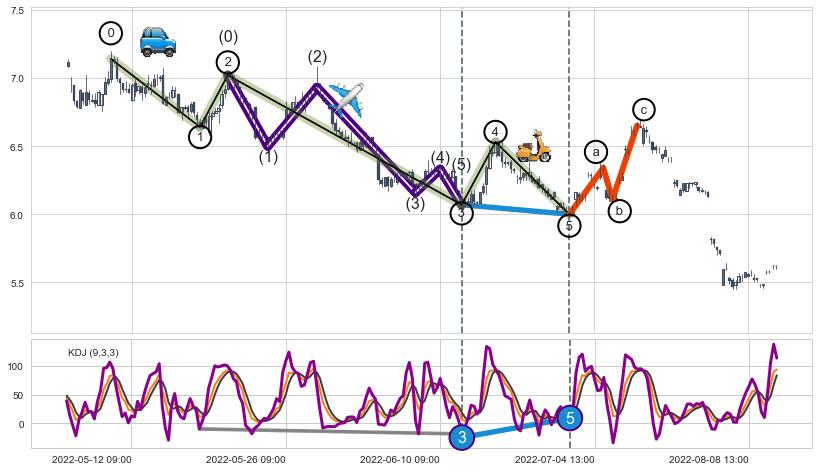 ➣ 波浪理论:猜想达到c点后小回调终止反转上涨 → 上涨 → 【拐点】临近 → 阶段均值回复结束后继续大周期趋势跟踪