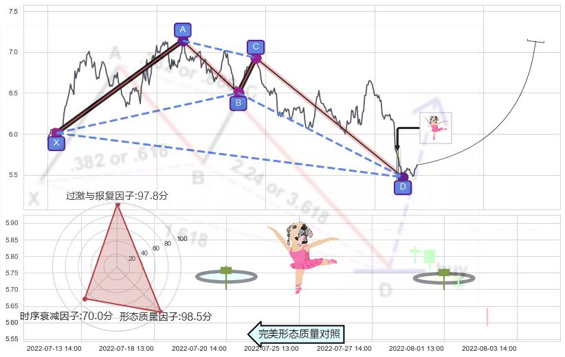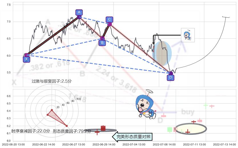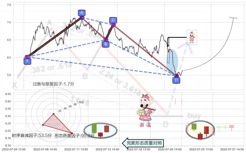 ➢ 上涨螺旋桨形态 🔜 谐波螃蟹d拐点上涨支撑 综合量化分数:52.07 【中性】