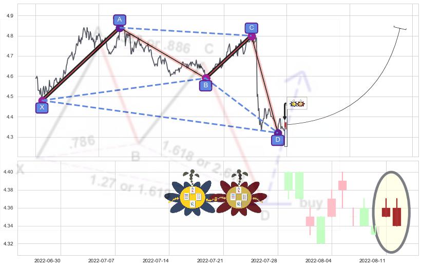 ➣ 已完成【蝴蝶】形态起点X: 03-16:10, 终点D: 08-03:14, 共377交易小时