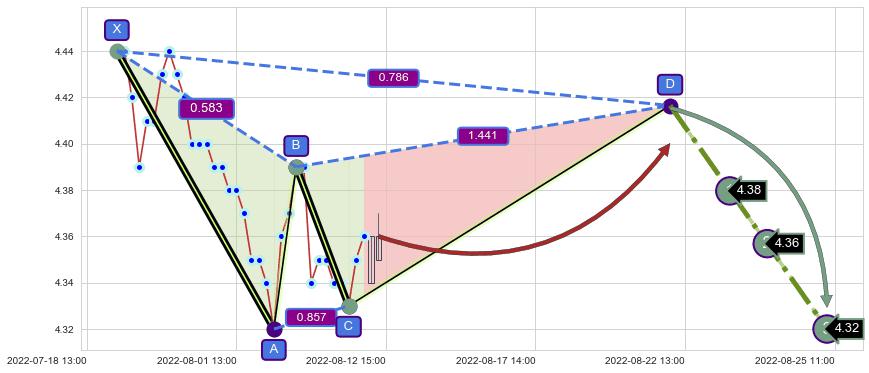 ➣ D点拟合预测价格4.42,距离最后交易收盘价格4.36相差 +1.29%