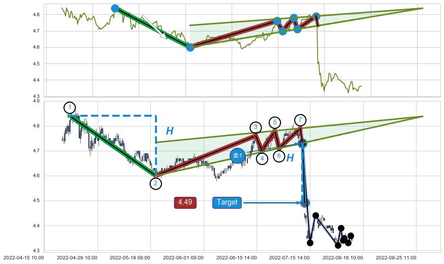 ➣ AI预测: 假定反转启动后, 第❶目标位置(08-23:12, 4.38)