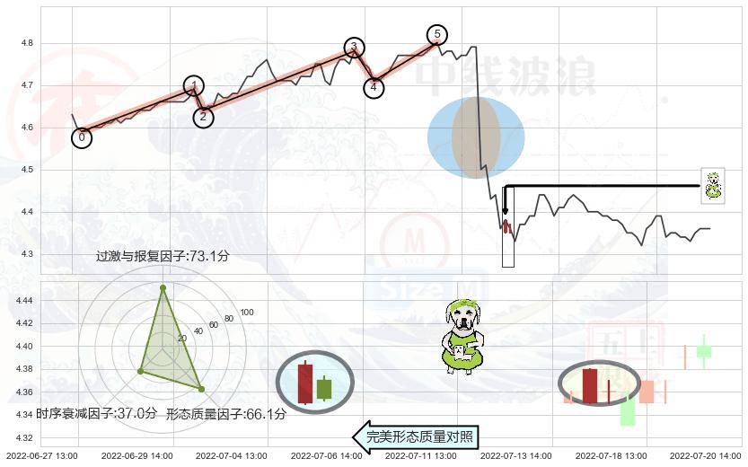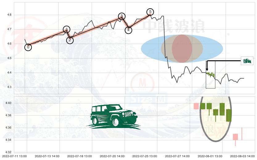 ➢ 🕰 价格走势在2022-07-28 14:00:00至2022-08-01 14:00:00期间形成高档五阴线,残存影响值:-5.04