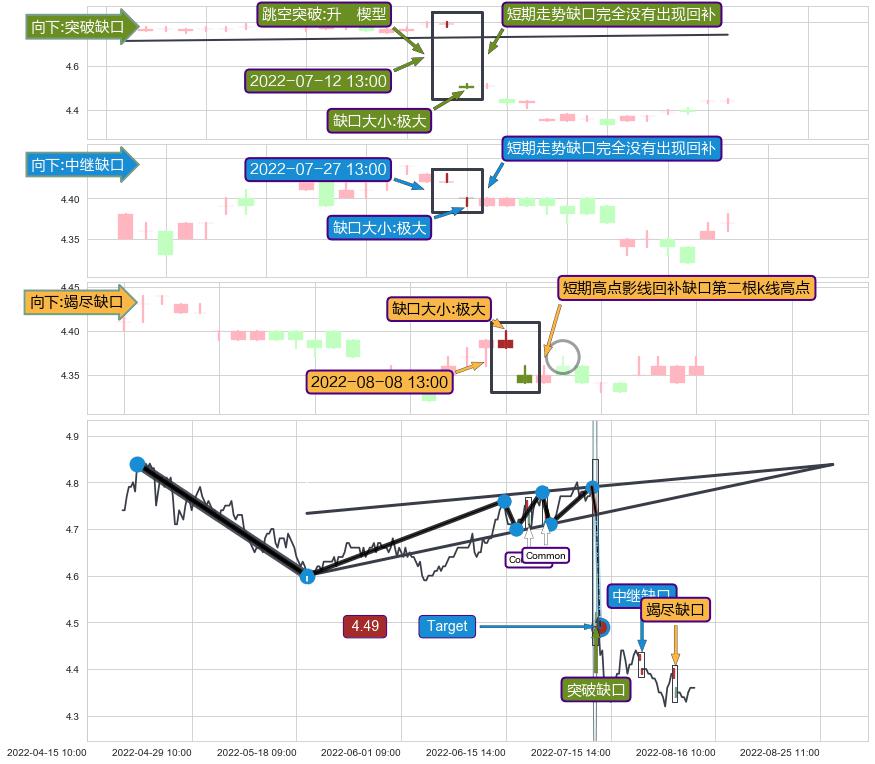 ➢ 2022-08-08 13:00形成:向下跳空【竭尽】缺口