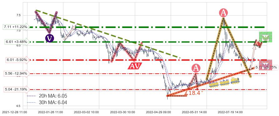♘ 阻力价格位7.11,可信任强度97.68%,距离最后交易2022-08-12 14:00形成的收盘价格6.39相差 +11.22%