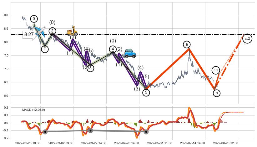 ➣ c.1: 当前c浪回调位置(08-12:13, 6.78),仍然有回调空间