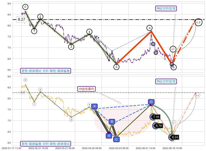 ♘ 在最后的下跌阶段2021-12-30 11:00至2022-08-11 14:00,存在 持续未破位的阻力位 ,阻力价格7.52,可信任强度88.16%,其距离最后价格6.78相差 +10.97%