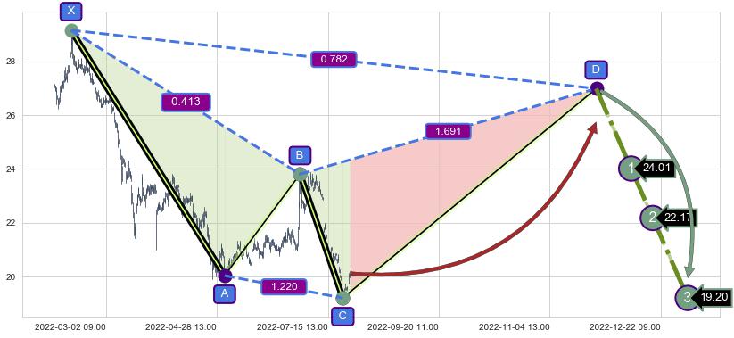 ➣ D点拟合预测价格26.98,距离最后交易收盘价格20.11相差 +34.17%