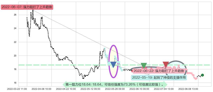 2022-06-22: 第一阻力位18.64强力阻拦了上升趋势,成功阻止了价格的继续上涨。