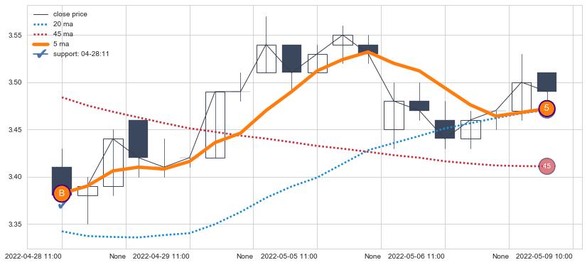 ➢ 45小时均线于(07-05 14:00: 3.500)形成【死叉】基于【死叉历史模型】预测死叉后最低波谷价格: 3.268, 死叉后最低价格3.070,已经下跌超出预测最低波谷价格, 预期反弹