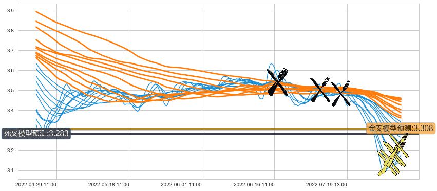 ➣ 55小时均线于(06-16 14:00: 3.539)形成【死叉】基于【死叉历史模型】预测死叉后最低波谷价格: 3.300, 死叉后最低价格3.070,已经下跌超出预测最低波谷价格, 预期反弹