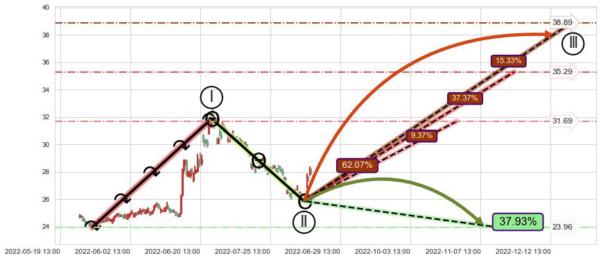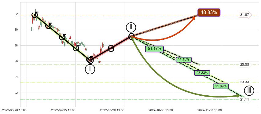 ♘ 支撑价格位24.93,可信任强度99.12%,距离最后交易2022-08-12 14:00形成的收盘价格27.91相差 -10.68%