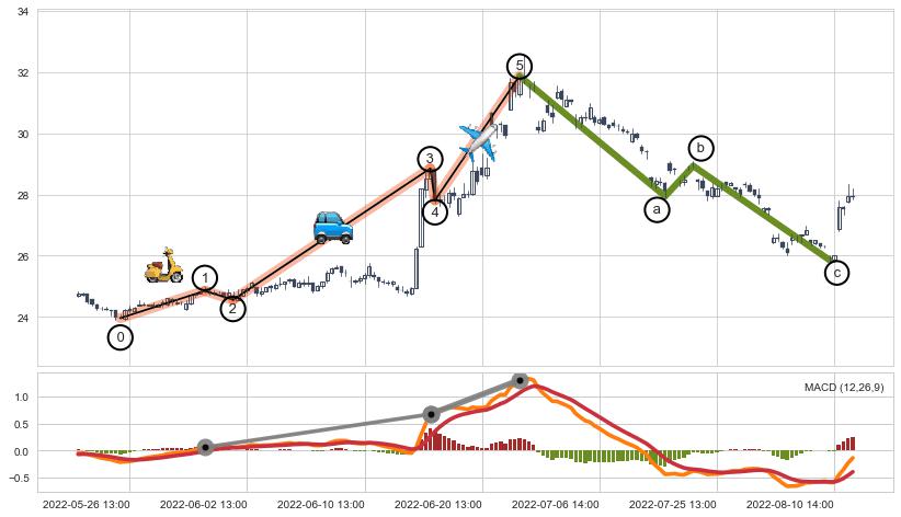 ➣ 波浪理论:猜想达到c点后小回调终止反转上涨 → 上涨 → 【拐点】临近 → 阶段均值回复结束后继续大周期趋势跟踪